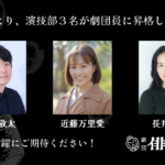 2026年4月1日 / 最終更新日 : 2026年3月31日 haiyuza お知らせ 新年度より、3名が劇団員へ、昇格しました! ◆ 演技部 井口敬太(いのぐち けいた) 近藤万里愛(こんどう まりあ) 長井優希(ながい ゆき) 2026年4月より、3名(俳優座演劇研究所32期/演技部3名)が劇団員に昇格いたしました。 今後の活躍にご期待ください!