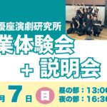 ★12月の授業体験&説明会 募集を開始いたしました。(11月12日) ★2026年度文藝演出部新人募集の募集要項公開/出願開始いたしました。(11月10日) ★2026年度演技部研究生新人募集《A日程》は終了いたしました。《B日程》の12月1日より出願受付開始いたします。(10月12日) ★舞台部新人募集