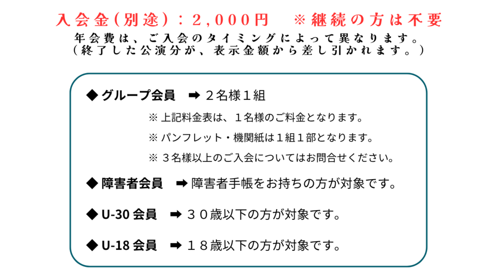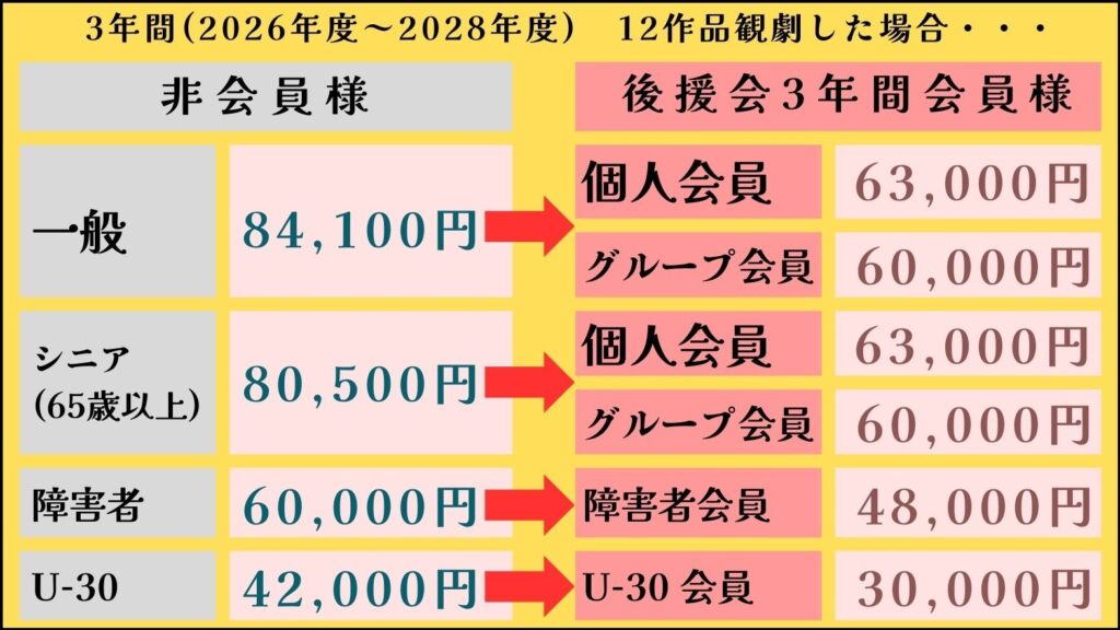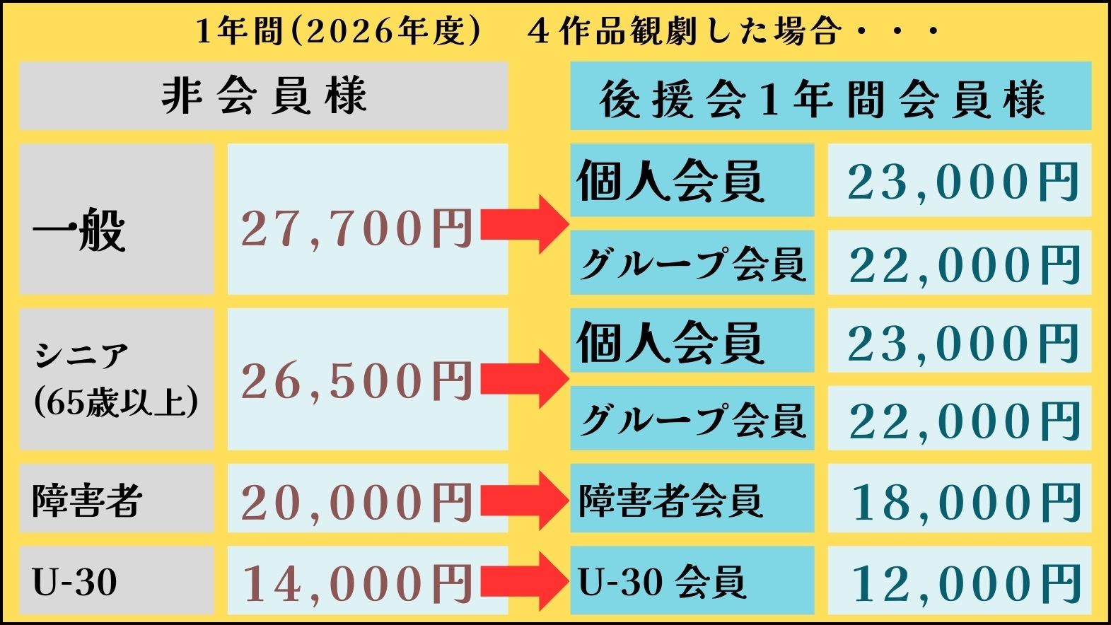 詳細についてはチケット料金・後援会会費改定のお知らせをご確認ください。