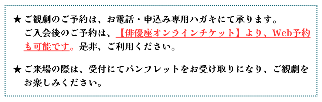 是非お見逃しなきよう、この機会に劇団俳優座後援会へのご入会いただき、演劇をお楽しみくださいましたら幸いです。